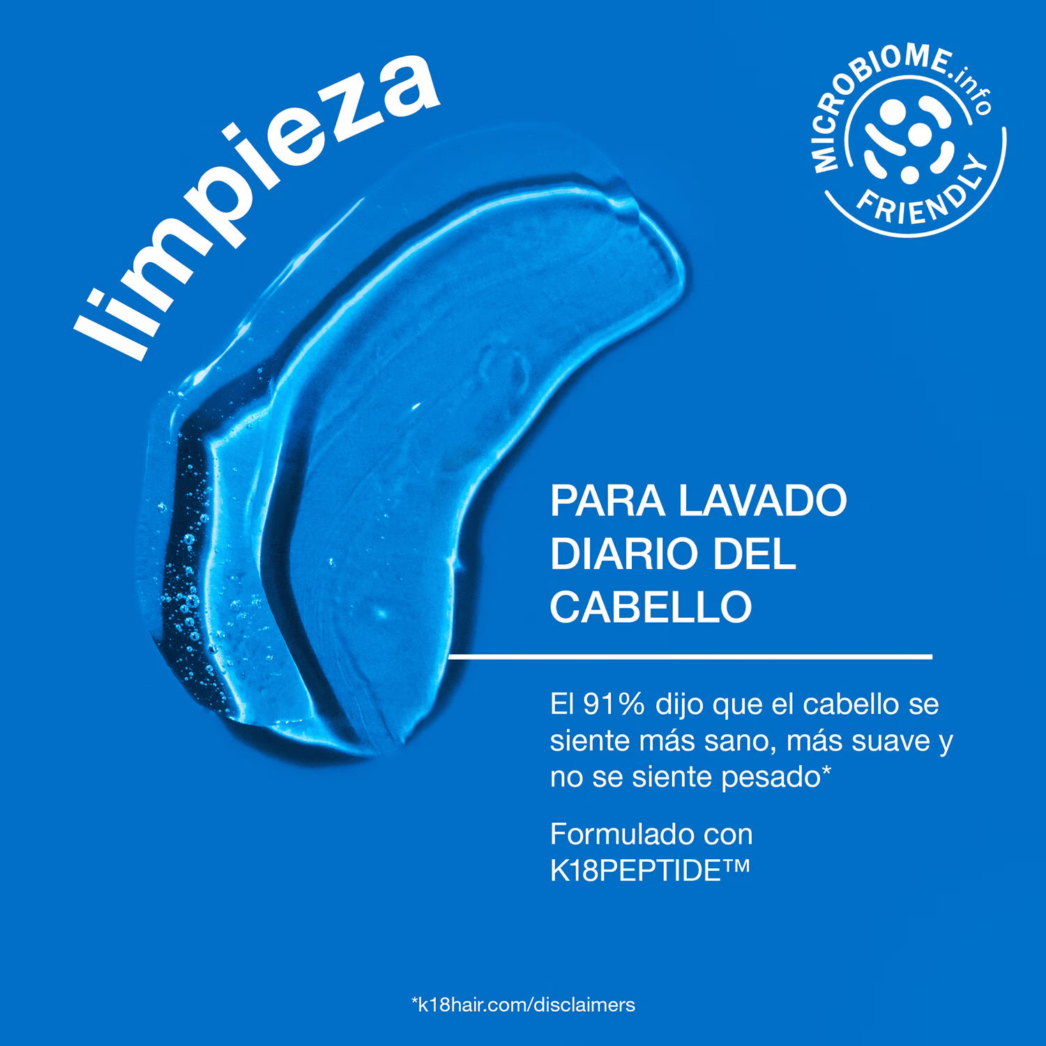 Un shampoo seguro para el color y con pH optimizado con el patentado K18PEPTIDE™ para limpiar eficazmente mientras mantiene la salud del cabello y lo protege del daño.